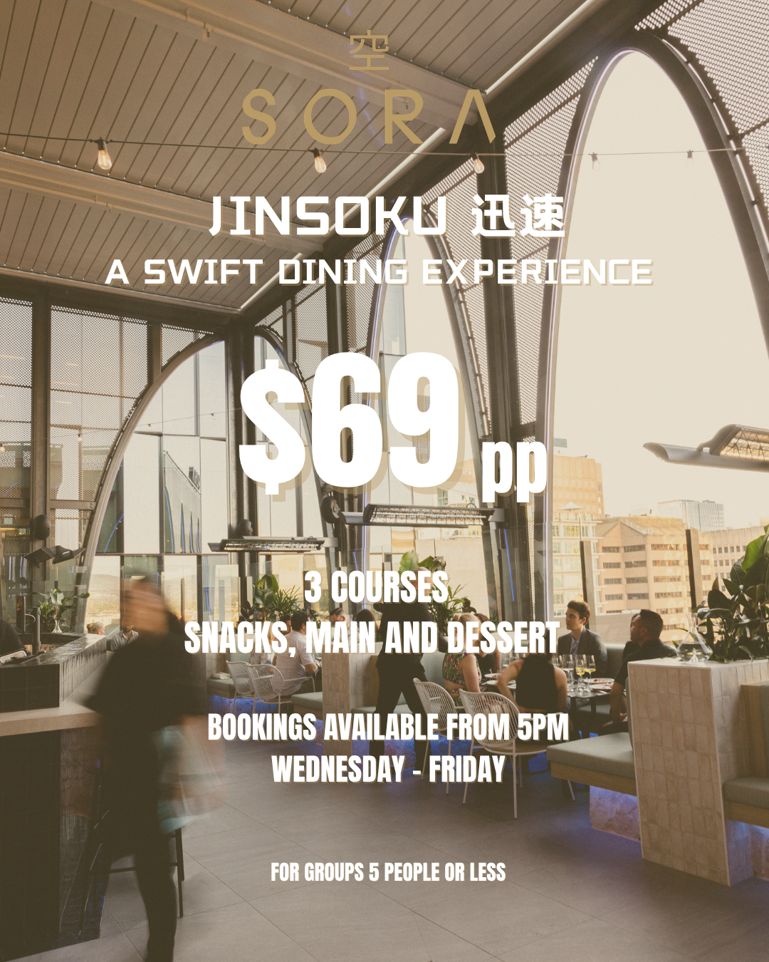 Perched atop the historic Pirie House on Level 9 at 89 Pirie Street, SORA is Adelaide’s premium destination venue for rooftop dining and entertainment.
